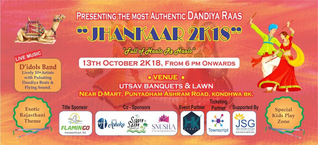 The Most Awaited and smashing event of Garba Dandiya at Yash lawns Pune on 17th October 2018 with LIVE authentic Gujrati band Jolly Times Musical Group with celebrity singers.