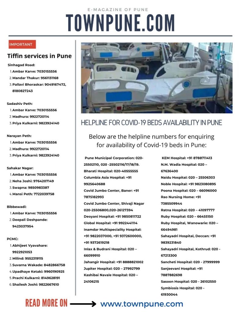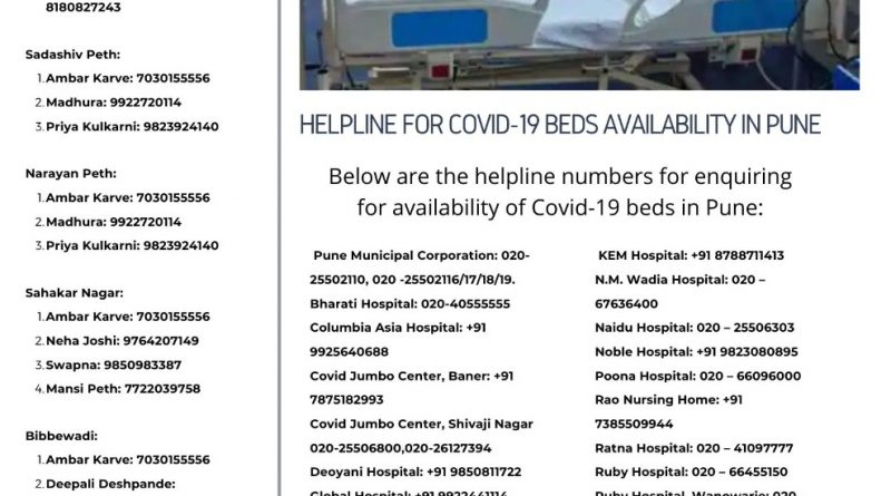 Below are the helpline numbers for enquiring for availability of Covid-19 beds in Pune: