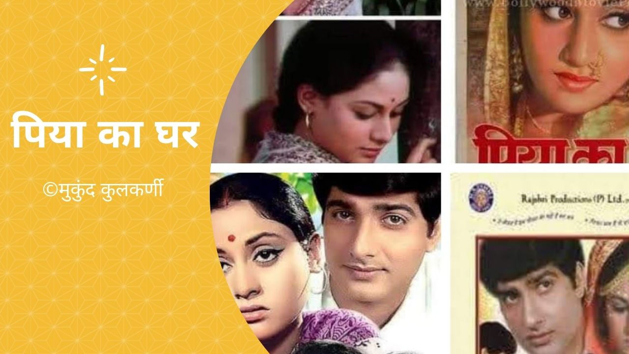 बासुदांच्या सदाबहार चित्रपटांच्या मालिकेतील आणखी एक चित्रपट ‘ पिया का घर ‘ वपुंच्या कथेवर आधारित मराठी ‘ मुंबईचा जावई ‘ या चित्रपटावर बेतलेला आहे हा सिनेमा . वपु आणि बासुदा एका नाण्याच्या दोन बाजू , एवढं साधर्म्य आहे त्यांच्या कलाकृतींमध्ये . सुशिक्षित , सुसंस्कृत , पापभिरू मध्यमवर्गीय चाकरमान्यांच्या भावपूर्ण कथा वपुंच्या साहित्यात आढळतात , नेमक्या याच सर्वसाधारण मध्यवर्ती कल्पनेवर आधारित असतात बासू चटर्जींचे चित्रपट . अरुण सरनाईक , सुरेखा , शरद तळवलकर , रत्नमाला यांच्या अप्रतिम अभिनयाने नटलेला मुंबईचा जावई तर , जया भादुरी , अनिल धवन ,राजा परांजपे , आगा , पेंटल आदि कलाकारांनी साकारलेला पिया का घर . आपल्या अप्रतिम अभिनयाने जया भादुरीने हा चित्रपट खऱ्या अर्थाने क्लासिक चित्रपटांच्या यादीत नेऊन ठेवला आहे .
