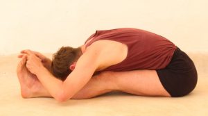6) Now that you are in this pose, gently press your chest on the thighs (or between the thighs if the latter are apart).